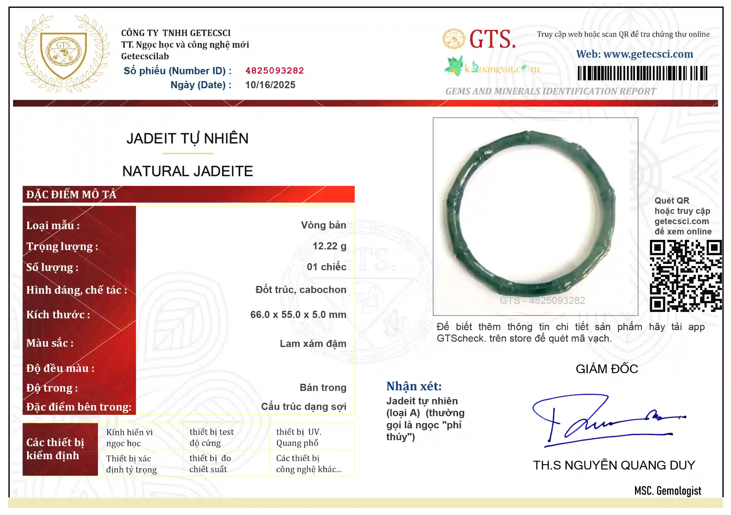 getecsci Bài viết liên quan Chứng thư báo cáo đá quý khoáng vật và ngọc : 4825093281 Th10 20, 2025 Chứng thư báo cáo đá quý khoáng vật và ngọc : 4825093148 Th9 17, 2025 Chứng thư kiểm định : 4824081911 Th8 22, 2024