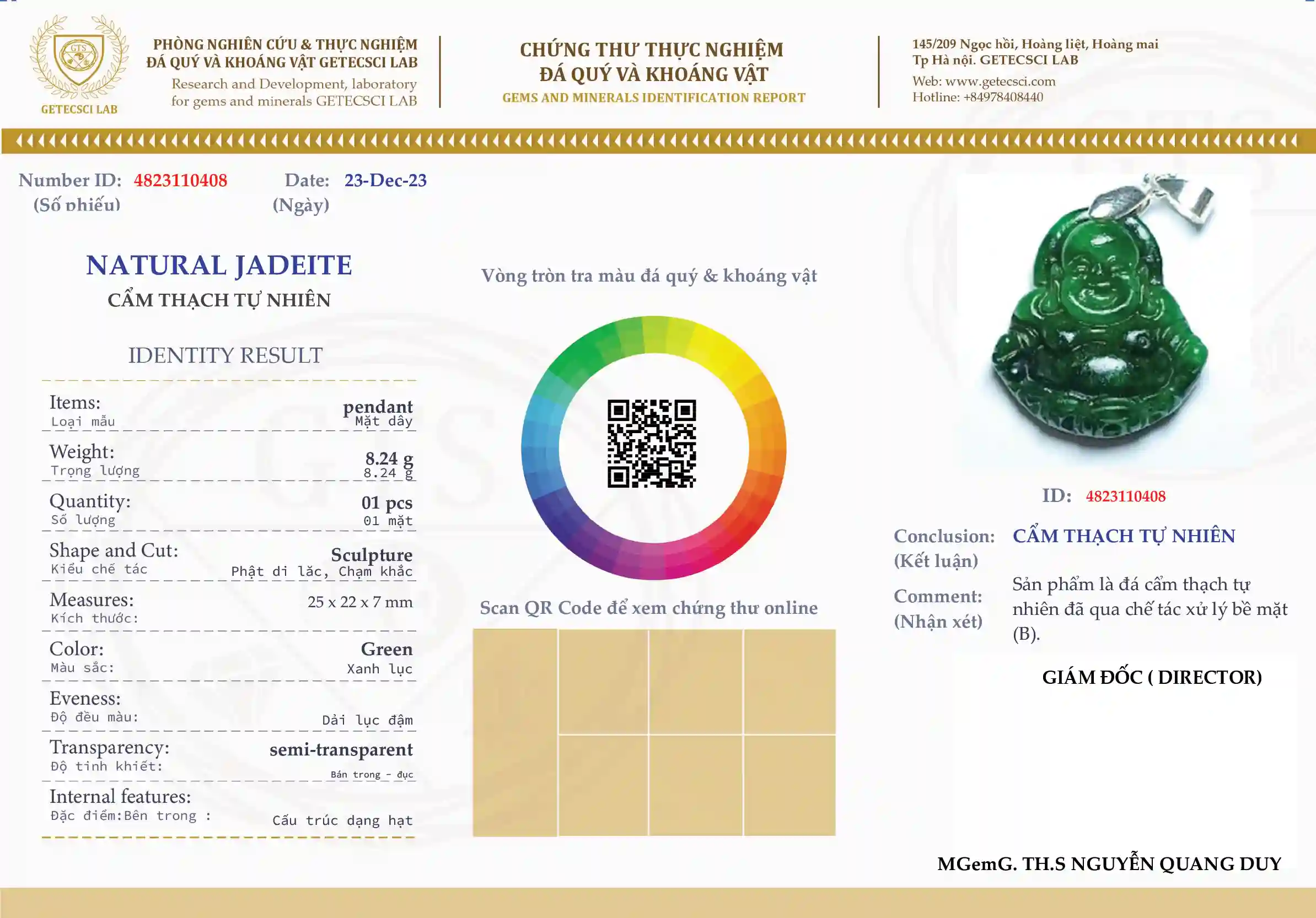 Chứng thư kiểm định : 4823110408 Posted on 25/12/2023 by getecsci Bài viết liên quan Chứng thư báo cáo đá quý khoáng vật và ngọc : 4825123561 Th4 8, 2026 Chứng thư báo cáo đá quý khoáng vật và ngọc : 4825123560 Th4 8, 2026 Chứng thư báo cáo đá quý khoáng vật và ngọc : 4825123559 Th3 28, 2026